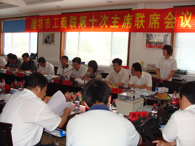 6月6日上午,濰坊市工商聯(lián)十次主席聯(lián)席會議在我公司二樓會議室召開,會議由濰坊市委統(tǒng)戰(zhàn)部副部長,市工商聯(lián)黨組書記孫向林主持。參加會議的還有市工商聯(lián)副主席陳有本、秦學(xué)民、張啟云以及市有關(guān)企業(yè)負(fù)責(zé)人共30余人。會上,市工商聯(lián)副主席,我公司董事長兼總經(jīng)理王兆連做了工作匯報。濰坊興業(yè)銀行與市工商聯(lián)主席、會長企業(yè)對接座談,各會長企業(yè)評議了市工商聯(lián)深入學(xué)習(xí)實(shí)踐科學(xué)發(fā)展觀活動分析檢查報告。會后參觀考察了我公司。