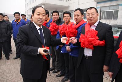 公司董事長兼總經理王兆連親自把車鑰匙交到獲獎者手中,并鼓勵大家在新的一年里再接再勵,拼搏進取,奮力開拓,再創佳績。