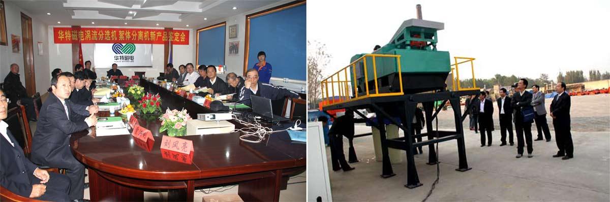 鑒定委員會在聽取匯報、審查資料、現場考察測試和質詢后,一致認該倆產品分別達到國內領先水平和國際先進水平。濰坊市科技局副局長張宏巖、濰坊市經信委副主任李玉軍分別講話,對鑒定會的成功召開表示衷心的祝賀,對專家教授們的辛勤勞動表示深深的感謝!同時勉勵企業要再接再厲,繼續抓好技術創新工作,把企業做強做大。公司董事長兼總經理王兆連致答謝詞。他感謝專家們對強磁場渦流分選機、稀土永磁絮體分離機所作的客觀公正的評價。他說本次產品鑒定會的圓滿成功,既是對我們華特公司技術創新工作的巨大鼓勵,也是對華特公司技術創新工作的一次鞭策。我們將不辜負專家、領導的信任,認真按照專家提出的建議,盡快形成系列化并擴大生產能力,加大推廣力度,積極拓寬市場應用面,使產品早日發揮社會效益。同時,也以本次鑒定會為契機,奮發努力,強化管理,進一步增強企業技術創新能力,把磁電事業做強做大,為引領行業技術進步,促進社會經濟發展,特別是在節能環保資源綜合利用等新興產業方面,為社會作出更大的貢獻。