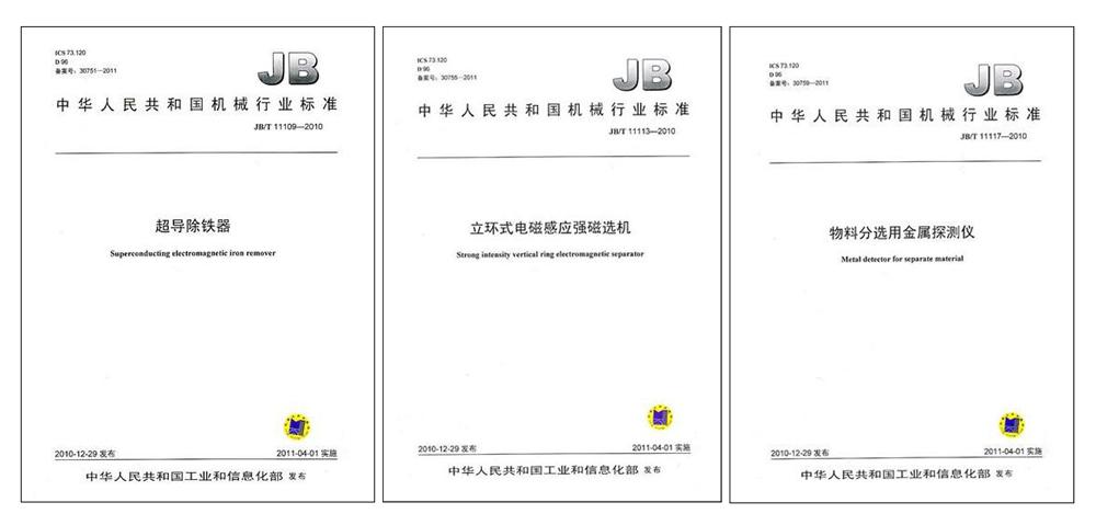 日前,公司負責起草的《超導除鐵器》,參加起草的《物料分選用金屬探測儀》和《立環式電磁感應強磁選機》等