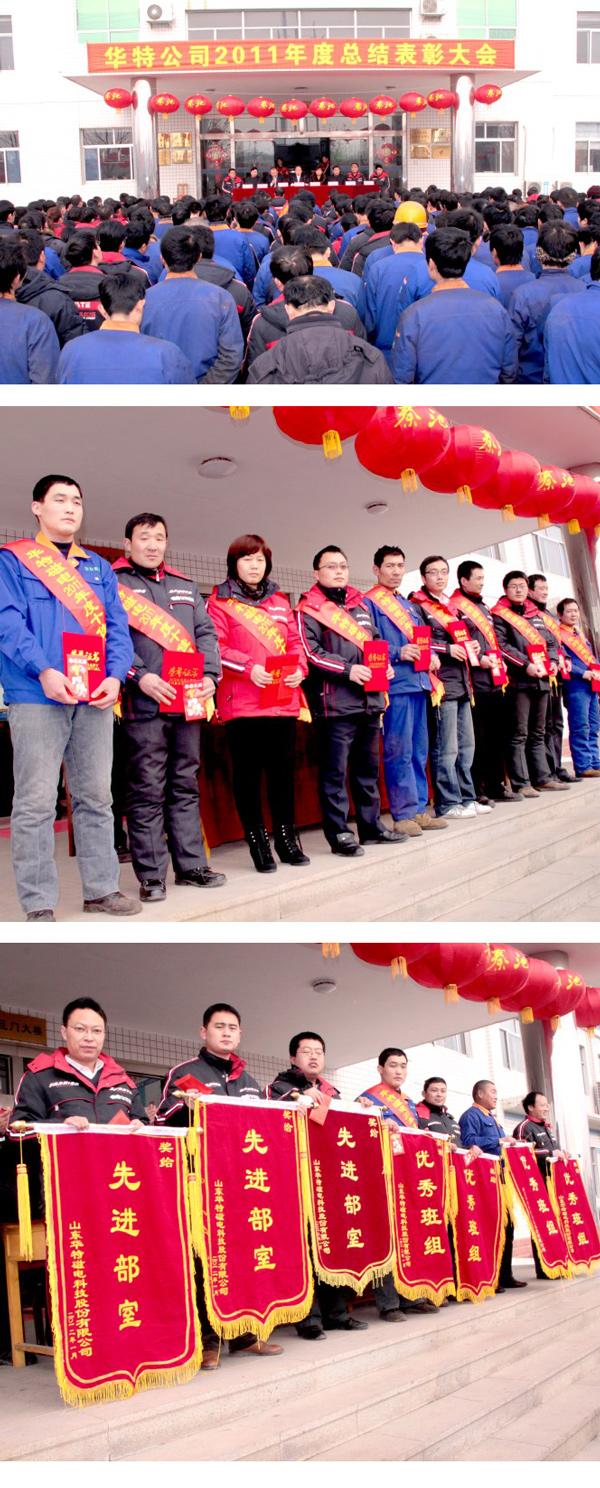 會上,公司董事長兼總經理王兆連對2011年公司生產經營情況做了簡要回顧總結,對過去一年里公司取得的優異成績給予充分肯定,對全體員工在過去一年里的努力工作表示感謝。他號召大家在新的一年里解放思想,與時俱進,齊心協力,確保2012年生產經營目標的實現,為公司再創新的佳績。隨后,大會對十佳先進個人、先進集體、營銷標兵進行表彰,并為獲得榮譽的先進個人和集體頒發榮譽證書及獎金獎品。