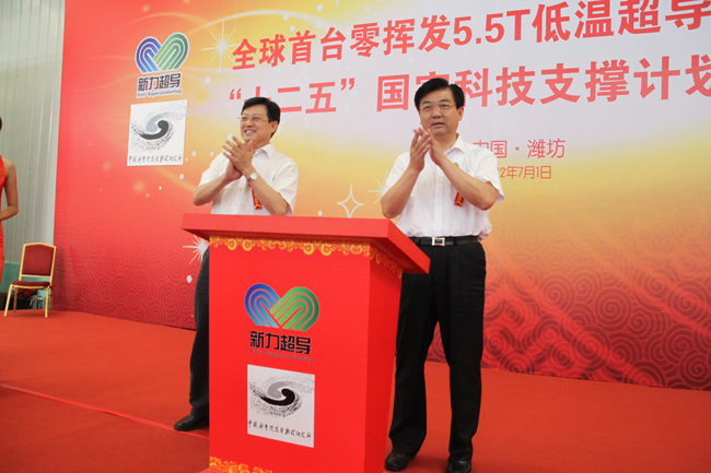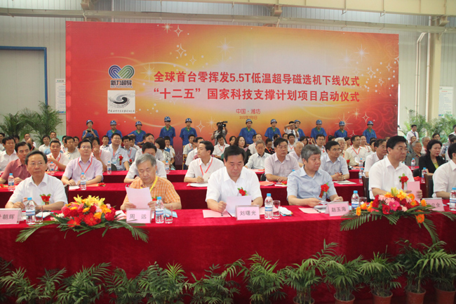 人民網濰坊7月2日電  7月1日,全球首臺零揮發5.5T低溫超導磁選機下線儀式和"十二五"國家科技計劃支撐項目“超導磁選機關鍵技術開發”啟動大會在濰坊舉行。