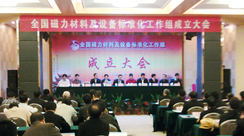9月4日,國家標(biāo)準(zhǔn)化管理委員會以國標(biāo)委綜合[2012]55號文批準(zhǔn)成立“全國磁力材料及設(shè)備標(biāo)準(zhǔn)化工作組”,并公布了第一屆全國磁力材料及設(shè)備標(biāo)準(zhǔn)化工作組(SAC/SWG12)委員名單。我公司及國內(nèi)有關(guān)大專院校、科研單位和其他企業(yè)的27個單位的代表名列其中。其中中國科學(xué)院力學(xué)研究所毛斌教授、蘭州大學(xué)物理學(xué)院李發(fā)伸教授為顧問,湖南大學(xué)電氣與信息工程學(xué)院黃守道教授為主任委員。