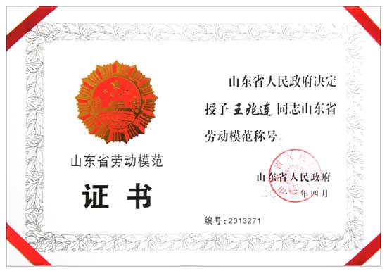 熱烈祝賀公司董事長兼總經(jīng)理王兆連被評為山東省勞動模范