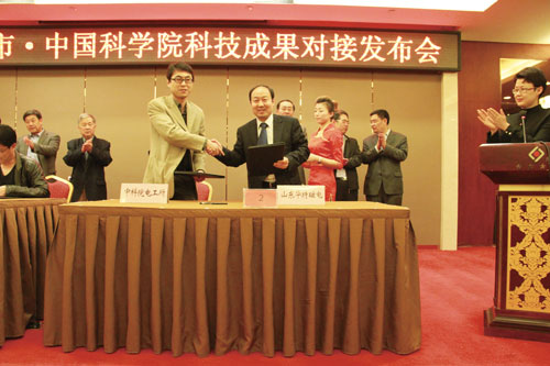 4月11日,公司董事長王兆連在濰坊東方大酒店參加了2014濰坊市-中國科學(xué)院科技成果對(duì)接發(fā)布會(huì),會(huì)后王兆連董事長與中國科學(xué)院電工研究所宋福川高工共同簽署了“蒸發(fā)冷卻 立環(huán)高梯度磁選機(jī)產(chǎn)業(yè)化合作協(xié)議”。蒸發(fā)冷卻立環(huán)高梯度磁選機(jī)已于2013年12月完成產(chǎn)品鑒定,該項(xiàng)技術(shù)屬國內(nèi)外首創(chuàng),主要技術(shù)性能達(dá)國際領(lǐng)先水平。新力公司與中科院理化所副所長劉新建簽訂了傳導(dǎo)冷卻式低溫超導(dǎo)磁體的研發(fā)合作協(xié)議。該技術(shù)是由理化所低溫材料及低溫技術(shù)研究中心主任李來鳳研究員團(tuán)隊(duì)的高新技術(shù)成果。前期合作主要用于實(shí)驗(yàn)用超導(dǎo)磁分離應(yīng)用的磁體,將為全國乃至全球從事礦物分離和污水處理的科研院所提供高科技和實(shí)用性更強(qiáng)的超導(dǎo)磁分離產(chǎn)品。