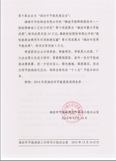 近日濰節(jié)約辦字[2015]28號文件和濰財(cái)企字[2015]28號文件下達(dá)了2015年度濰坊市節(jié)能獎的相關(guān)通知,我公司自主研發(fā)的發(fā)明專利產(chǎn)品提精降渣磁選機(jī)獲節(jié)能獎優(yōu)秀節(jié)能成果,獎勵資金5萬元。此次獲評是對提精降渣磁選機(jī)的充分肯定,該產(chǎn)品與電磁淘洗機(jī)串聯(lián)使用成功代替了反浮選工藝,省去了藥物除硅環(huán)節(jié),節(jié)能環(huán)保效益顯著。該產(chǎn)品項(xiàng)目2014年列入山東省科技發(fā)展計(jì)劃,2015年5月通過了新產(chǎn)品鑒定,技術(shù)達(dá)到國際領(lǐng)先水平,目前該產(chǎn)品已實(shí)現(xiàn)大批量產(chǎn)業(yè)化生產(chǎn),年產(chǎn)200臺套提精降渣磁選機(jī)生產(chǎn)線項(xiàng)目已列入濰坊市重大謀劃項(xiàng)目。