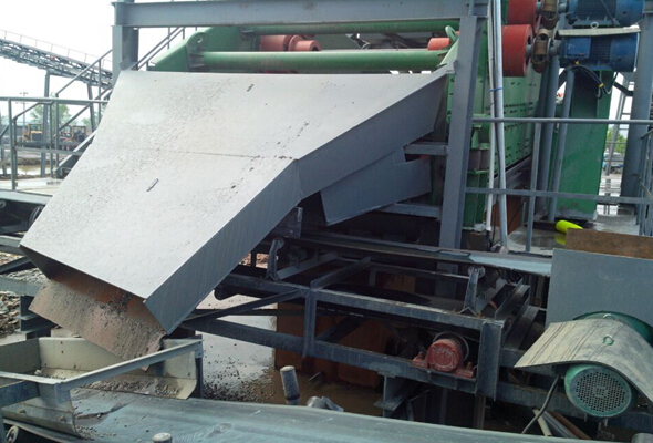 主要工藝流程:廢石經細破至-12mm,首先經過濕式預選磁選機分選出粗精礦和尾礦;粗精礦進入振動篩分級,分別篩出大顆粒粗精礦和細顆粒粗精礦;尾礦進入振動篩分級,分別篩出米石、粗砂和細顆粒尾礦。共生產出5種產品。