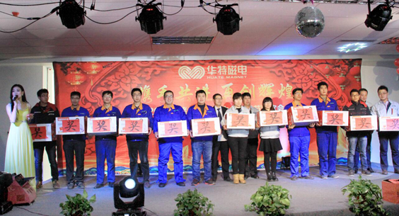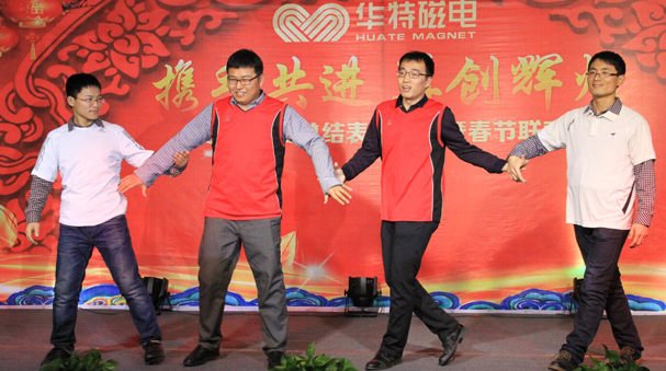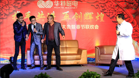2017年元月20日下午,山東華特公司2017年春節(jié)聯(lián)歡會在公司二樓餐廳隆重舉行。公司董事長兼總裁王兆連,常務副總裁劉風亮,公司董事、副總裁劉梅,副總裁王建波,公司董事、工會主席王學軍,總裁助理魏黎明、劉西軍,財務總監(jiān)、董秘孟昭剛,公司監(jiān)事會主席、總工程師賈洪利及濰坊新力超導磁電科技有限公司常務副總李培勇等全體員工齊聚一堂,繼往開來,其樂融融。