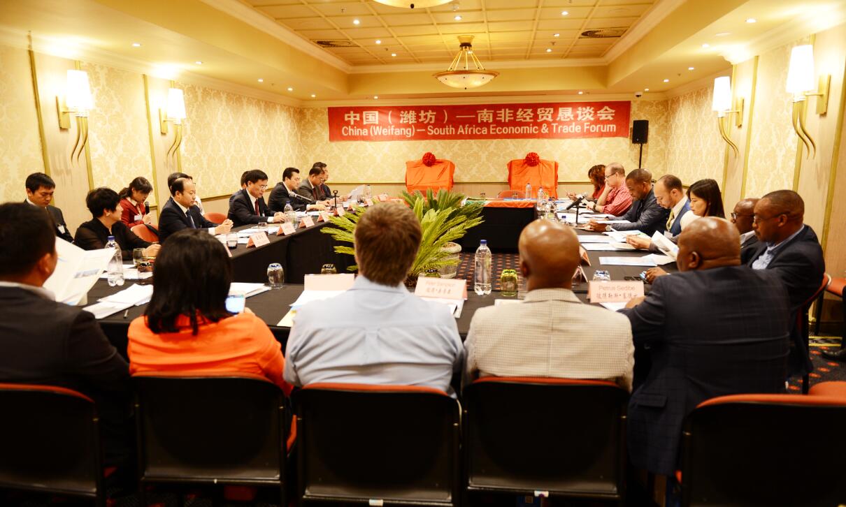 本次會議主旨“圍繞“一帶一路”建設(shè),積極推進(jìn)中國(濰坊)與南非在經(jīng)濟(jì)、貿(mào)易、文化、教育等方面的友好合作,推進(jìn)以華特磁電為首的濰坊先進(jìn)裝備制造業(yè)走進(jìn)南非,共同探討濰坊制造與南非礦業(yè)經(jīng)濟(jì)未來合作發(fā)展方向,進(jìn)一步促進(jìn)南非與中國(濰坊)兩地在經(jīng)貿(mào)、人才、文化、科技、金融、農(nóng)業(yè)等方面加快交流與發(fā)展”。