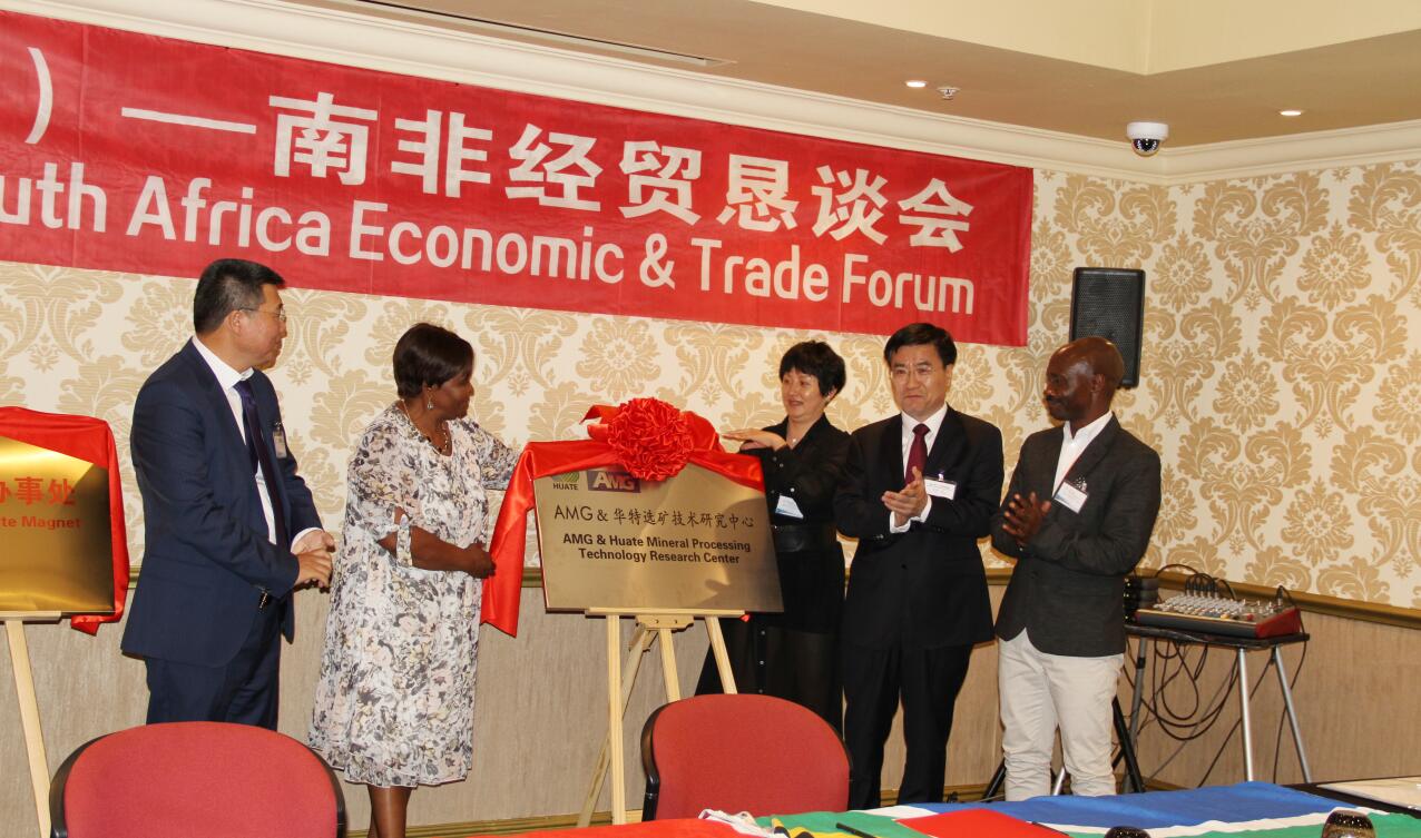 會議結(jié)束前,隆重舉行了華特公司與AMG集團(tuán)進(jìn)行了“聯(lián)合共建選礦技術(shù)中心”簽約儀式及“AMG--華特選礦技術(shù)研究中心”和“華特磁電南非辦事處”揭牌儀式三項活動。