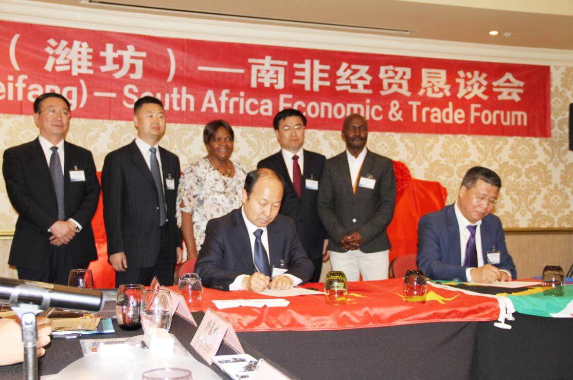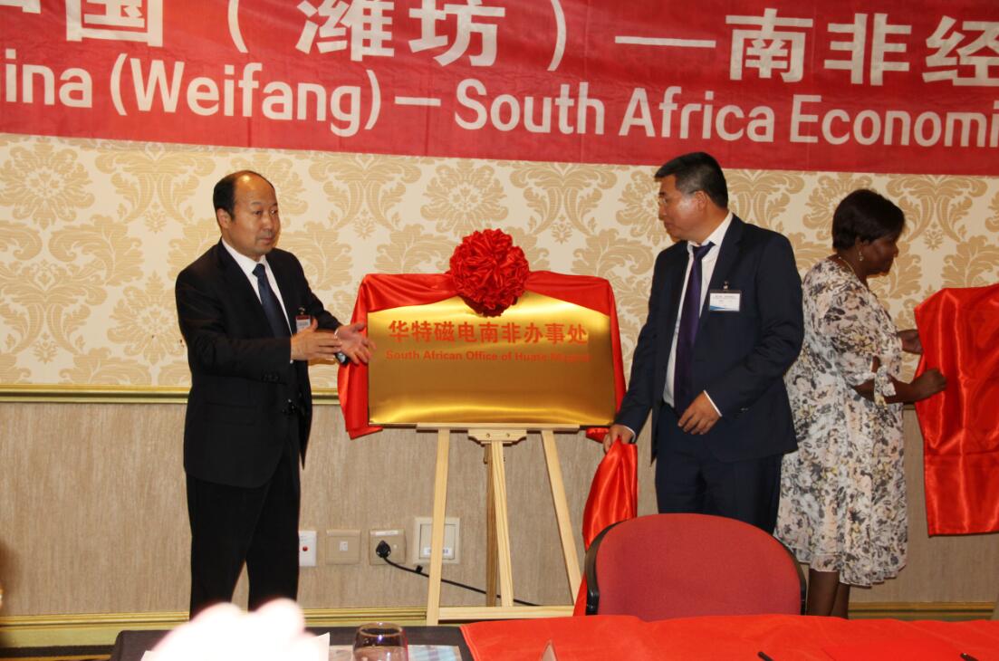 9月11日下午,由濰坊市人民政府主辦,南非AMG集團(tuán)公司和山東華特磁電科技股份有限公司共同協(xié)辦的“中國(濰坊)—南非經(jīng)貿(mào)懇談會”在美麗的約翰內(nèi)斯堡市凱撒皇宮大酒店會議廳隆重舉行。