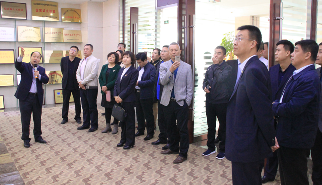 4月24日上午,為了解全縣在鼓勵企業創新發展方面存在的不足,進一步增強全縣企業創新發展意識,探索全縣企業創新發展激勵措施,臨朐縣政協副主席、黨組副書記劉學海,縣政協經濟組學習活動召集人、縣政協委員、縣經信局黨工委副書記姬光飛帶領縣政協經濟界委員30余人,在縣經信局技改辦書記王福波,研究室副主任李國營,城關街道黨工委委員、經濟開發區管委會副主任尹德忠等領導的陪同下,蒞臨華特公司開展調研活動。山東省第十二屆政協常委、縣政協常委、華特公司董事長兼總裁王兆連陪同活動。