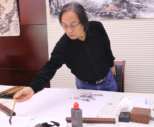 短暫的座談會后,畫家們來到了公司二樓多功能大廳開始了書畫創作。臨朐美術名家參加活動的有:傅立、白星安、王法生、姜會信、王春國;臨朐書法名家參加活動的有:張頤人、宋智利、劉建華、周世民、楊文梁。老師們書畫創作的熱情高漲,一直創作到下午1:00才收筆。