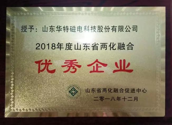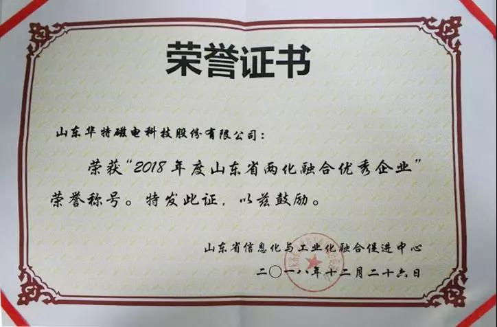 12月28日,山東省“2018年度兩化融合深度行總結大會暨第二屆新動能軟件創新創業大賽頒獎典禮”在濟南隆重舉行,山東省工業和信息化廳總工程師李英峰出席大會并發表講話。會上舉行了2018年兩化融合突出貢獻獎頒獎典禮,對2018年度“山東省兩化融合優秀企業、山東省兩化融合先進個人、山東省兩化融合推進工作先進單位、兩化融合優秀解決方案廠商”等進行了頒獎。山東華特磁電科技股份有限公司被評為“2018年度山東省兩化融合優秀企業”。