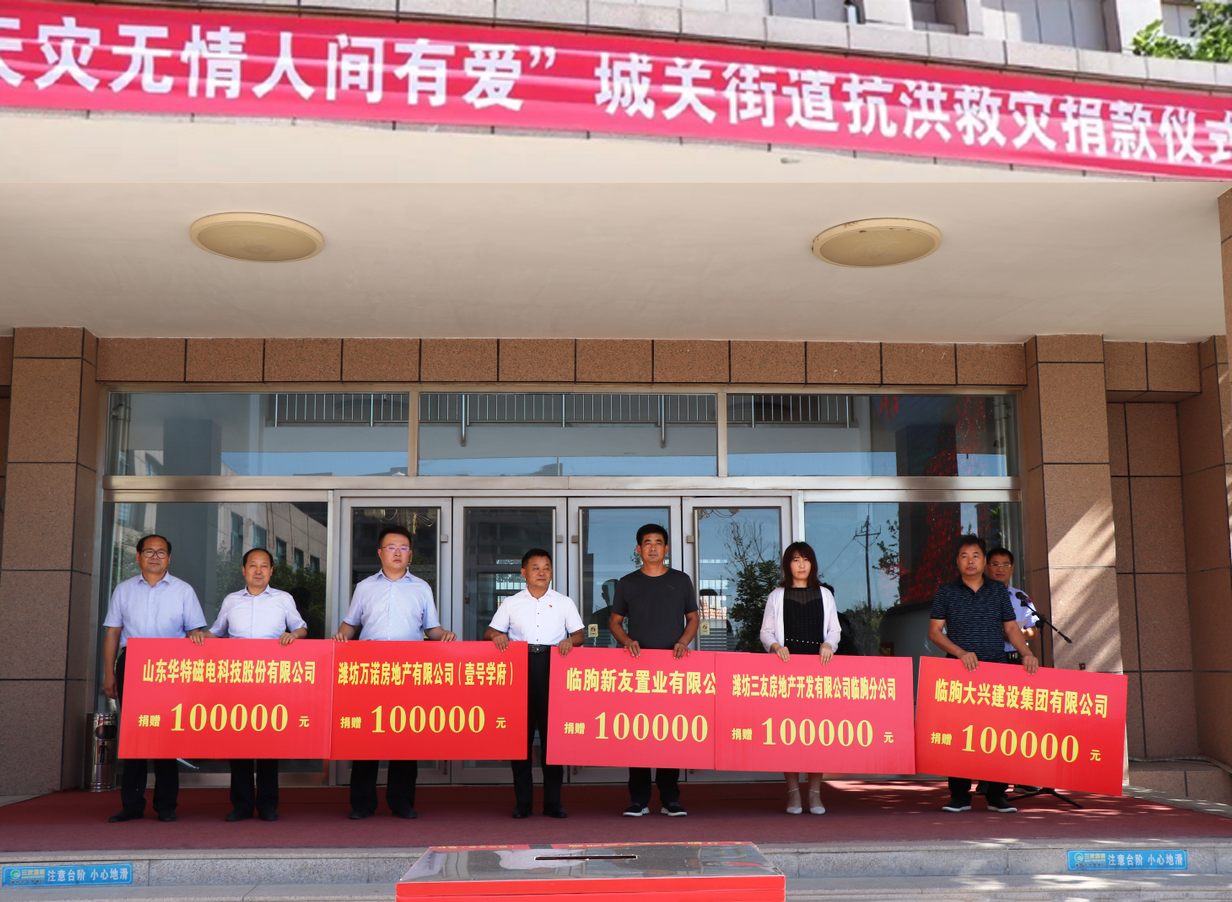 一方有難,八方支援;眾志成城,重建家園。作為一家具有高度社會責任感的國家級高新技術企業,華特公司始終秉承“取之于社會、用之于社會、反哺于社會”理念,歷年來累計為社會各界捐款1600多萬元,用于助學、助教、筑路架橋、家鄉基礎設施建設、抗災救災等,先后榮獲“全國光彩之星”“濰坊愛心慈善企業”等多項榮譽稱號。天災無情,面對這場突如其來的災難,華特人責無旁貸,積極響應各級黨委政府災后重建工作的部署要求,向受災地區提供人、財、物各方面的支持,盡最大努力幫助災區人民克服困難,為災區人民重建家園貢獻綿薄之力。我們相信在臨朐縣委、縣政府和城關街道黨工委、辦事處的正確領導和積極應對下,在各級各部門各行業和社會各界人士的共同努力下,一定能打贏這場水毀重建攻堅戰,建設美麗新家園。